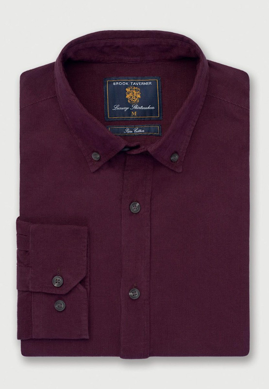 Brook Taverner – Cotton Needle Cord Shirt – Plum