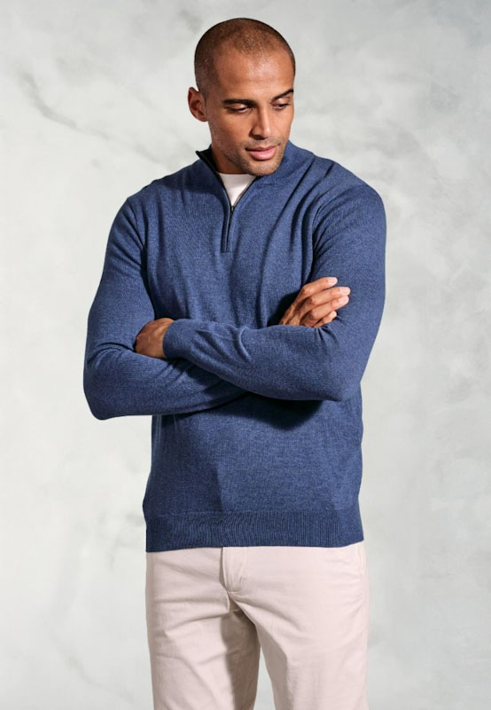 Brook Taverner – Quarter Zip Copenhagen Pullover – Denim Blue
