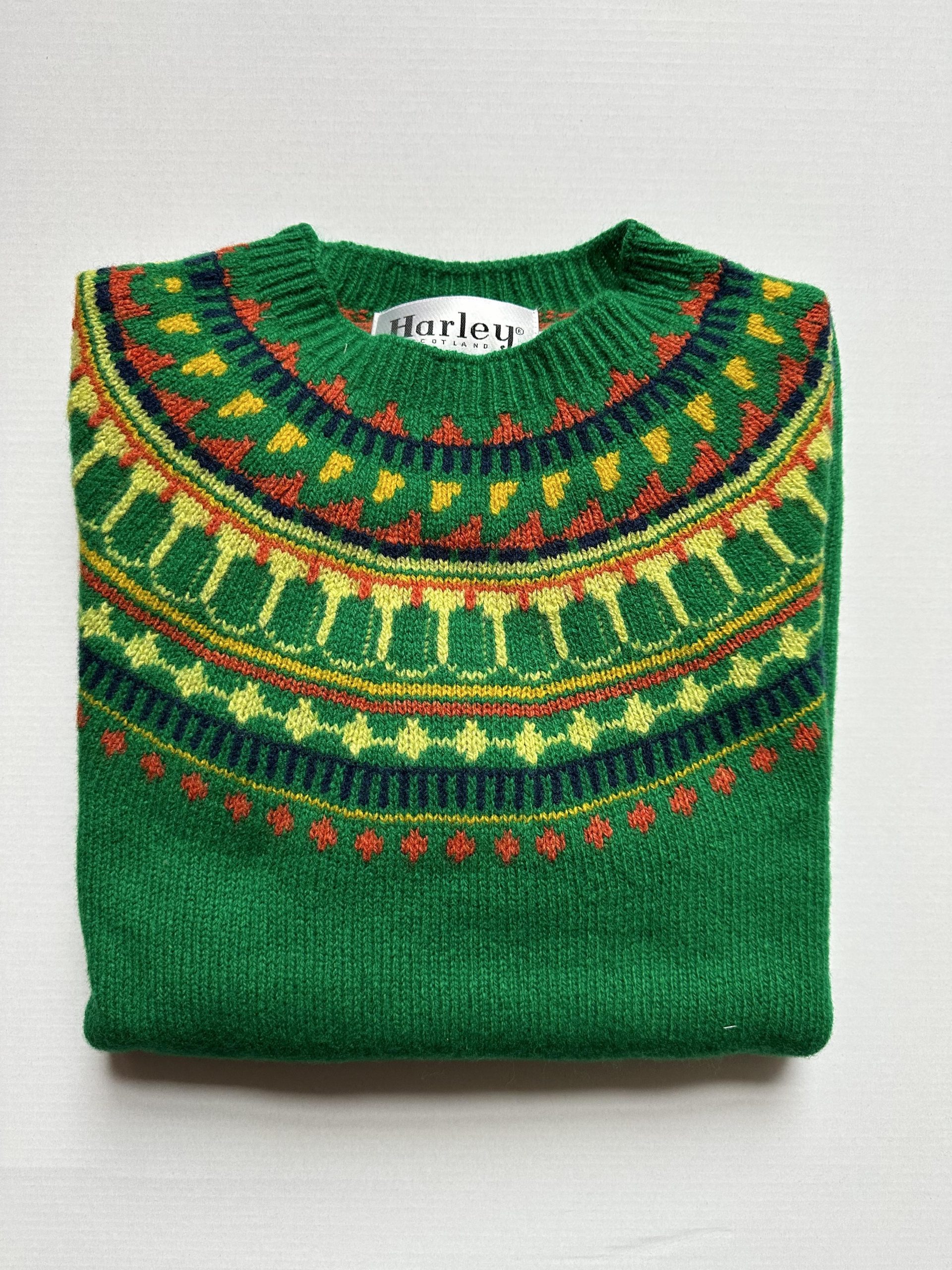 Harley of Scotland – Ladies Crew Neck Fair Isle Jumper – Jungle