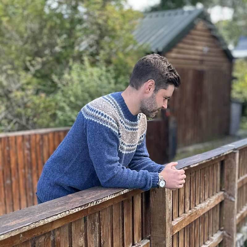 Harley of Scotland – Men’s Fair Isle Crew Neck Jumper – Denim Tundra