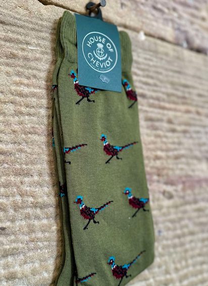 House of Cheviot – Gents Cotton pheasant socks – Green