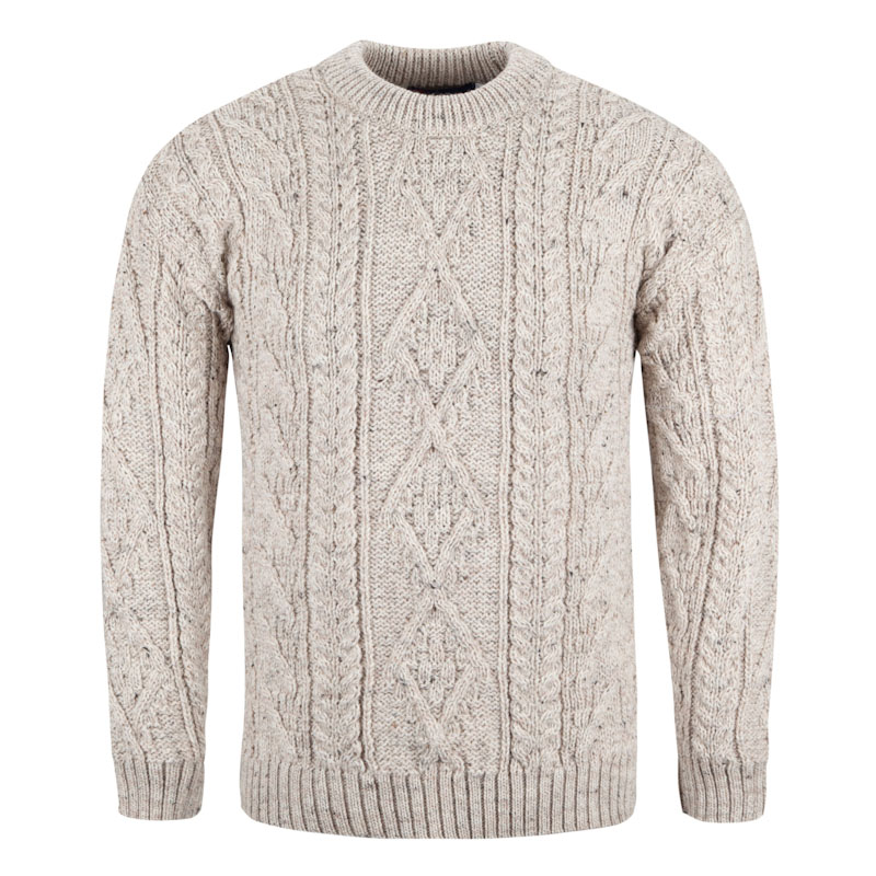 Tags: mens knitwear, BRITISH KNITWEAR, knitwear made in UK, jm cooper jumper, gents jumper, cable jumper, oatmeal cable jumper