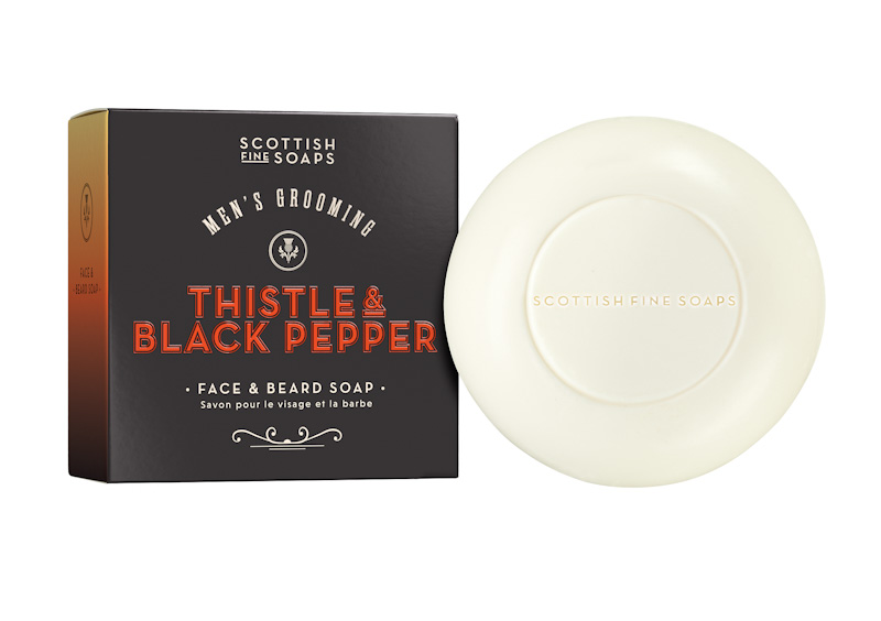 Scottish Fine Soaps – Mens Grooming Thistle & Black pepper Face & Beard soap 100g