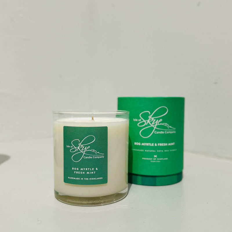 An ever so Highland scent, with musky bog myrtle from the glens, fused with some fresh Scottish mint leaves. Camphor and juniper berry hints have been added to create a pleasant middle note, adding to the fresh fragrance.